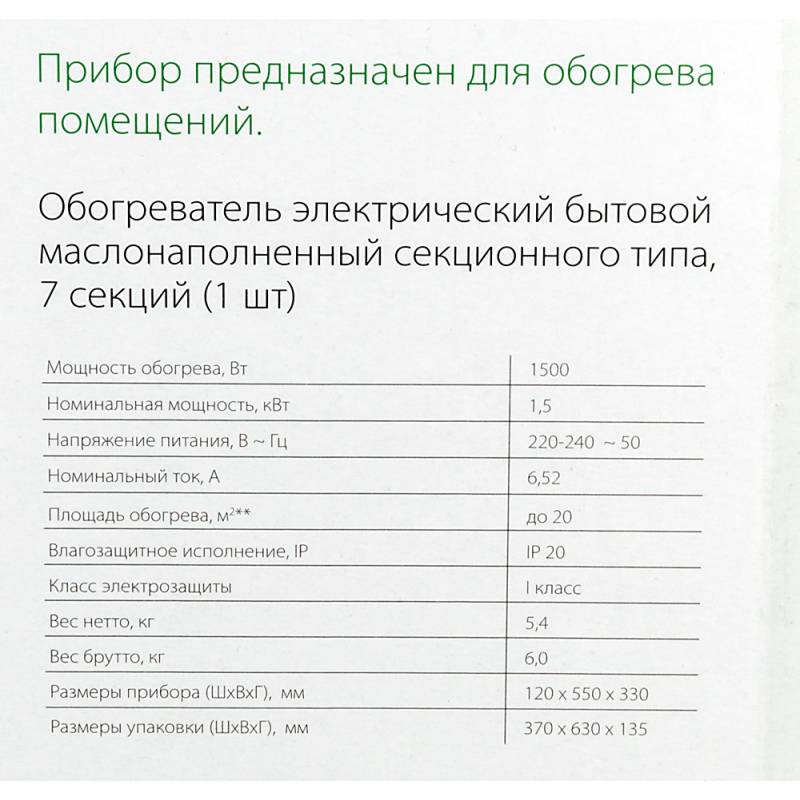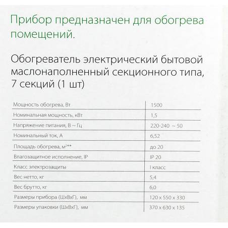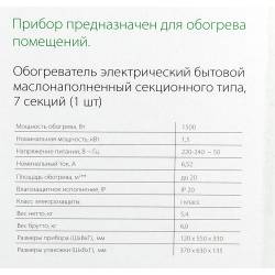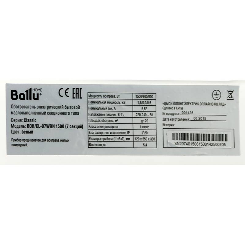 Радиатор масляный Ballu Classic BOH/CL-07WRN 1500Вт белый/черный