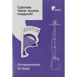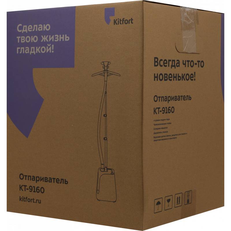 - Вертикальный отпариватель Kitfort КТ-9160 позволяет быстро прогладить любые вещи и изделия из текстиля. Кроме глажки и отпаривания он обрабатывает вещи мощной струёй горячего пара, проводя таким образом чистку и дезинфекцию.