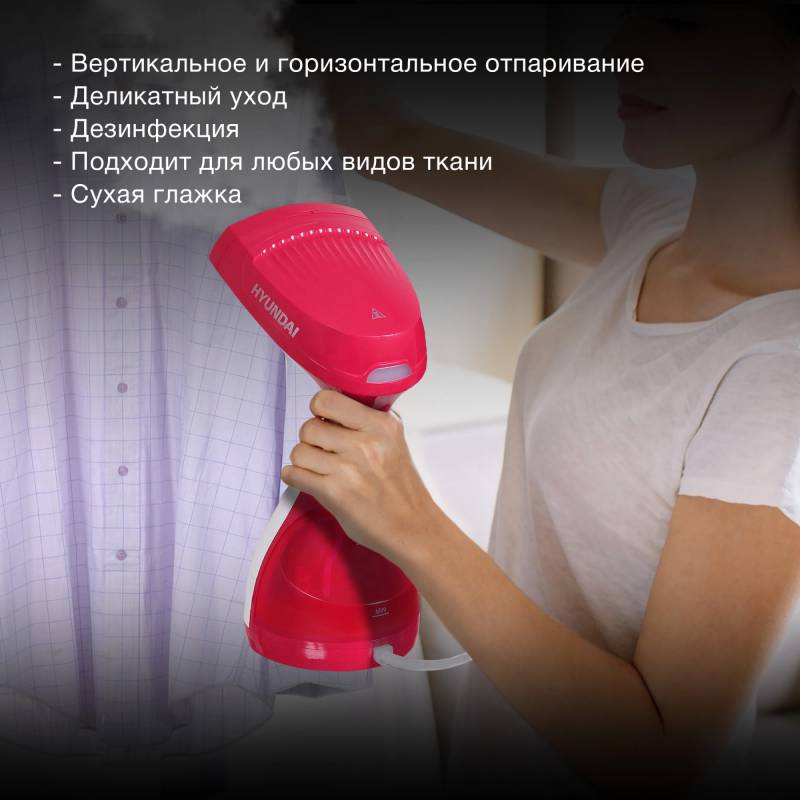 Отпариватель ручной Hyundai H-HS02123 1650Вт белый/вишневый