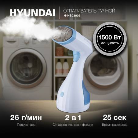 Отпариватель ручной Hyundai H-HS03008 1500Вт белый/голубой