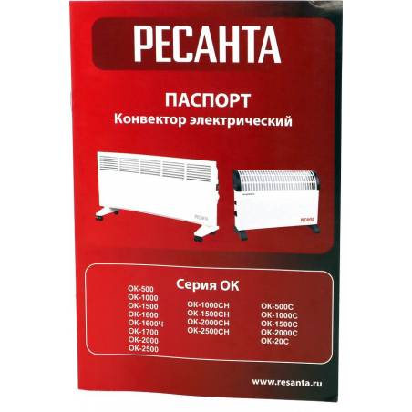 Конвектор Ресанта ОК-1000С 1000Вт белый