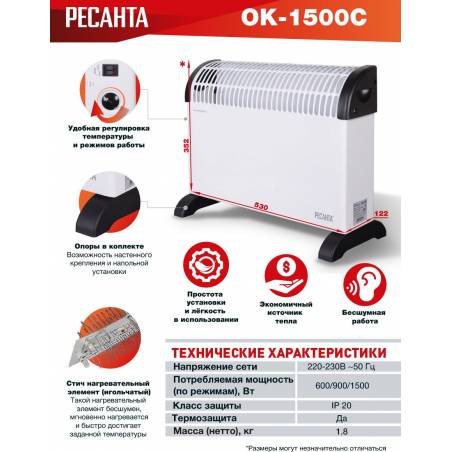 Конвектор Ресанта ОК-1500С 1500Вт белый