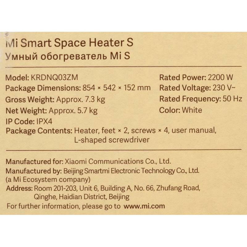 Конвектор Xiaomi Mi Smart Space Heater S 2200Вт белый/серый