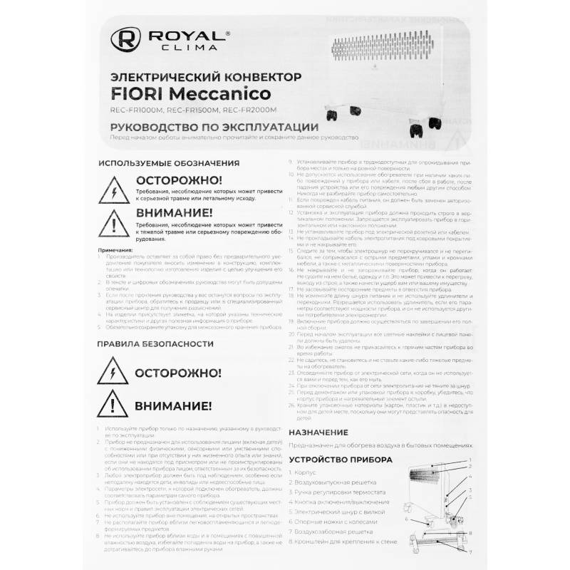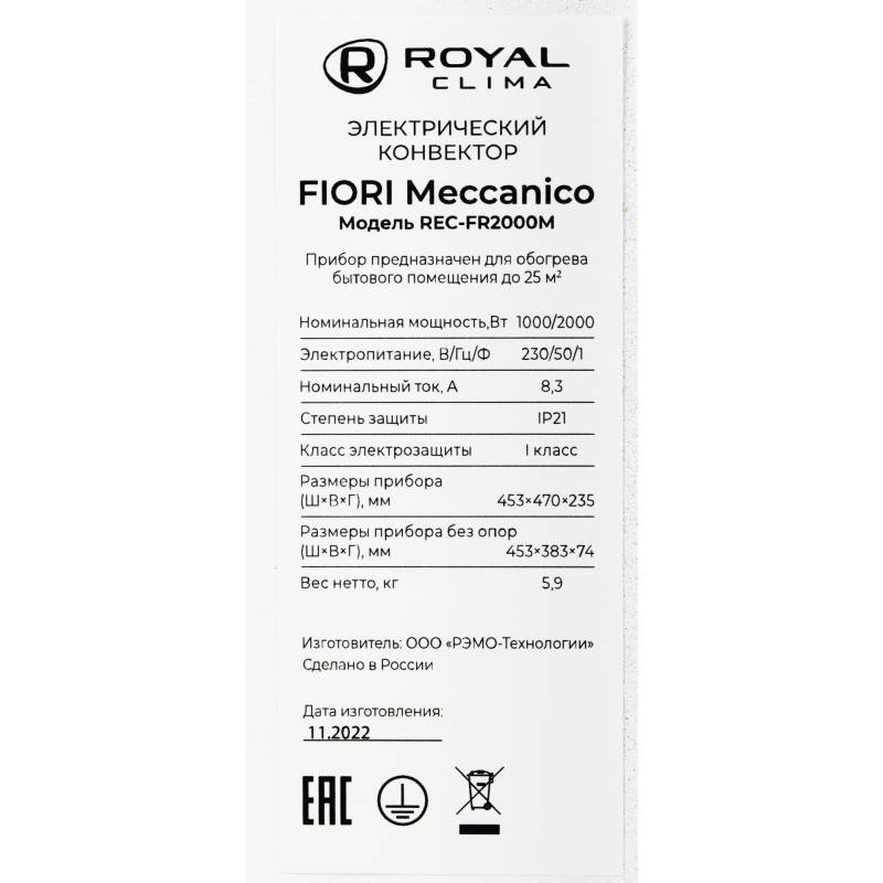 Конвектор Royal Clima FIORI Meccanico REC-FR2000M 2000Вт белый