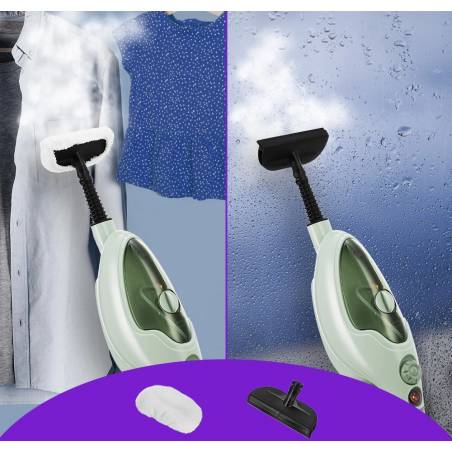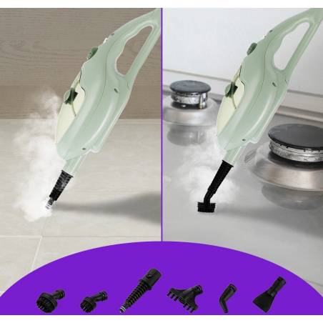 - насадка для пола с крышкой отсека для батареек, тряпка для пола, рамка для ковра, насадка для отпаривания со скребком, тряпка для отпаривания, переходник на паровое сопло, плоская нейлоновая щетка, малая круглая нейлоновая щетка, большая круглая нейлонова