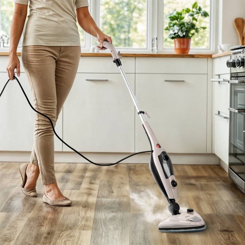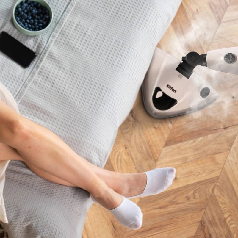 - Паровая швабра КТ-3929 — универсальное устройство, которое поможет избавиться от пыли и грязи с помощью мощной струи пара, а также продезинфицирует обрабатываемую поверхность. Уборку паровой шваброй можно проводить без чистящих средств.