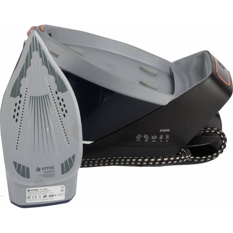 - Быстро и качественно отгладить костюм, брюки, платье или плащ позволит паровая станция VITEK VT-2430 с мощностью 2400 Вт и максимальным давлением 5,5 бар. Устройство может работать как в режиме обычного утюга, так и вертикального отпаривателя.