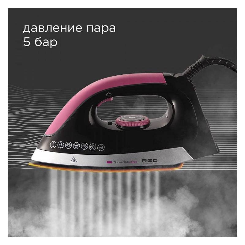 - RED SOLUTION RSS-5907 — прибор «2 в 1» для качественного и легкого отпаривания и глажения. Парогенератор действует в разы эффективнее и быстрее обычного утюга и практически мгновенно справляется с самыми сложными задачами: разглаживает пересушенное и