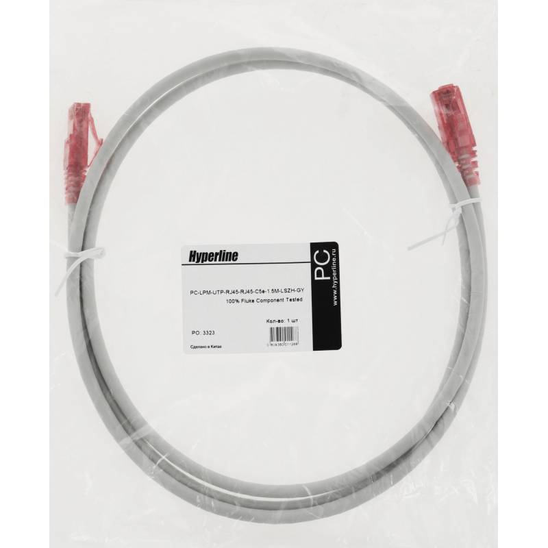 Патч-корд Hyperline PC-LPM-UTP-RJ45-RJ45-C5E-1.5M-LSZH-GY PC-LPM-UTP-RJ45-RJ45-C5E-1.5M UTP RJ-45 вил.-вилка RJ-45 кат.5E 1.5м с