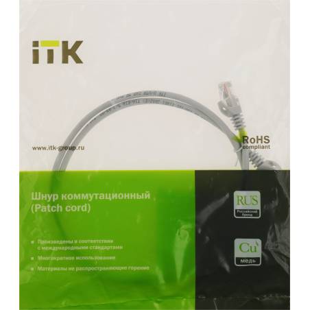 Патч-корд ITK PC01-C5EU-1M UTP RJ-45 вил.-вилка RJ-45 кат.5E 1м серый ПВХ (уп.:1шт)
