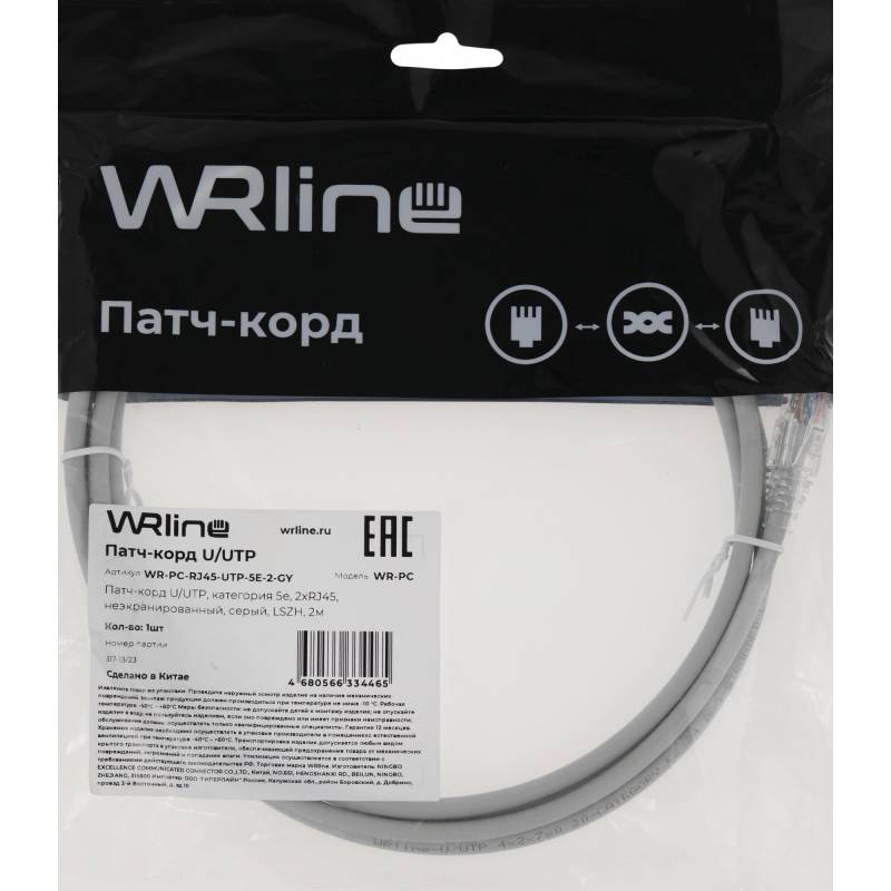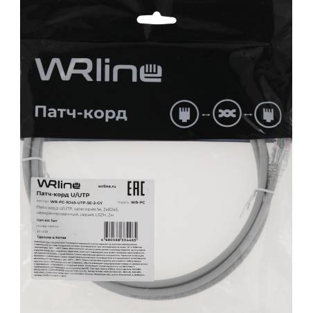 Патч-корд WRline WR-PC-RJ45-UTP-5E-2-GY UTP RJ-45 вил.-вилка RJ-45 кат.5E 2м серый LSZH (уп.:1шт)