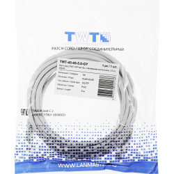 Патч-корд Lanmaster TWT-45-45-5.0-GY UTP RJ-45 вил.-вилка RJ-45 кат.5E 5м серый ПВХ (уп.:1шт)