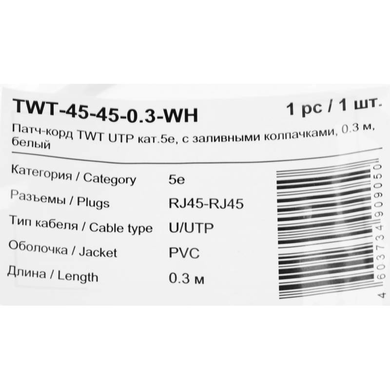 Патч-корд Lanmaster TWT-45-45-0.3-WH UTP RJ-45 вил.-вилка RJ-45 кат.5E 0.3м белый ПВХ (уп.:1шт)