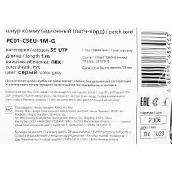 Патч-корд ITK PC01-C5EU-1M-G UTP RJ-45 вил.-вилка RJ-45 кат.5E 1м серый ПВХ (уп.:1шт)