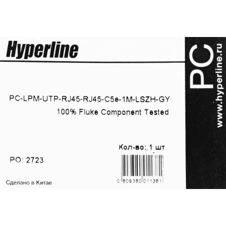 Патч-корд Hyperline PC-LPM-UTP-RJ45-RJ45-C5E-1M-LSZH-GY PC-LPM-UTP-RJ45-RJ45-C5E-1M UTP RJ-45 вил.-вилка RJ-45 кат.5E 1м серый L