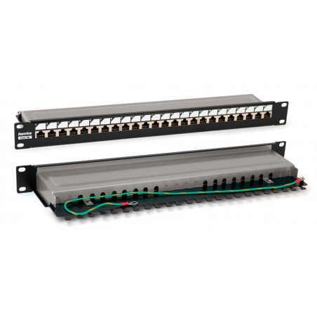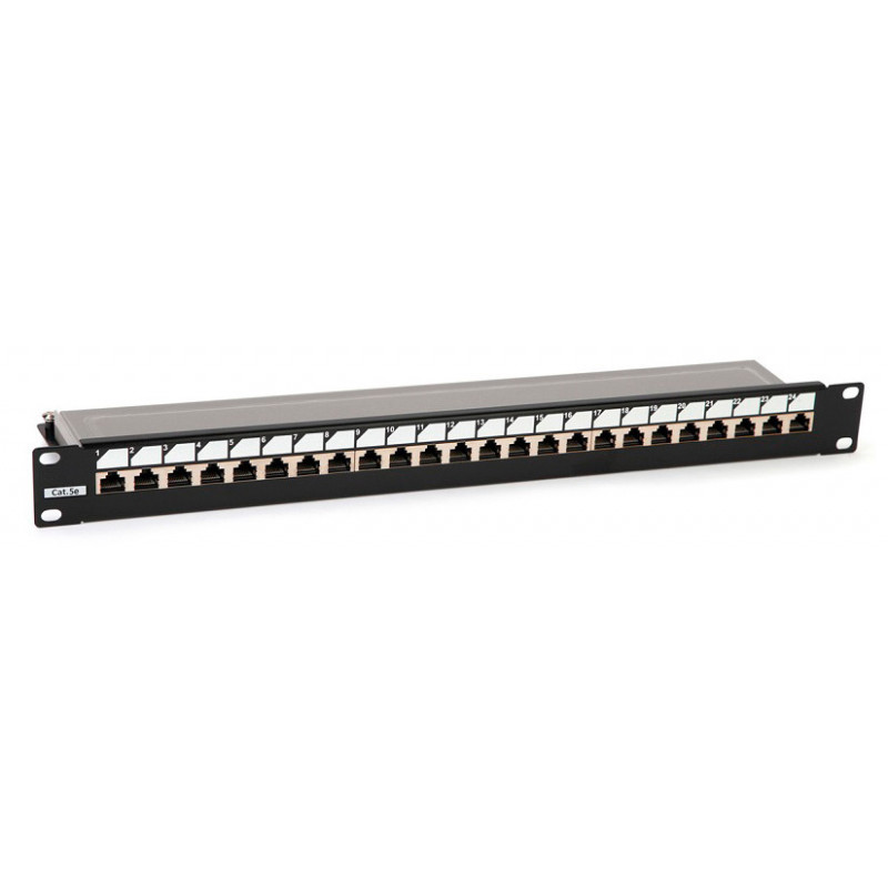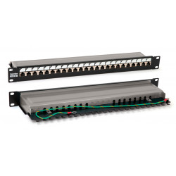 - Hyperline PP3-19-24-8P8C-C5E-SH-110D Патч-панель 19", 1U, 24 порта RJ-45 полн. экран., категория 5e, Dual IDC, ROHS, цвет черный