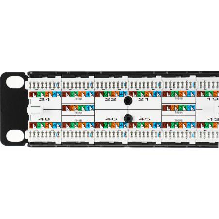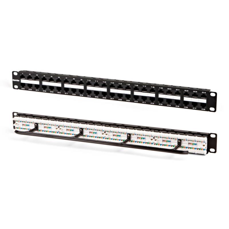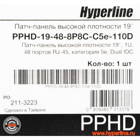 - Hyperline PPHD-19-48-8P8C-C5e-110D Патч-панель высокой плотности 19", 1U, 48 портов RJ-45, категория 5e, Dual IDC