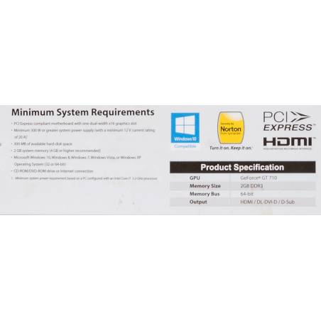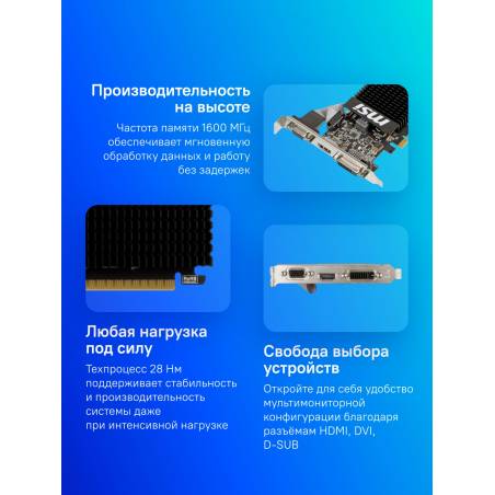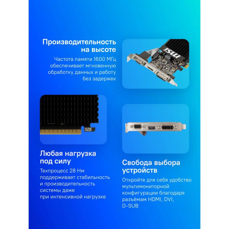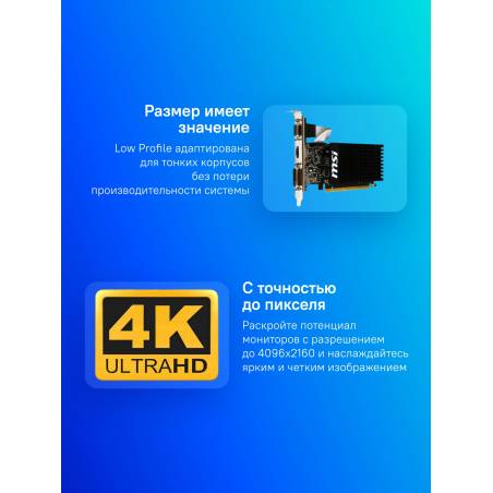 Видеокарта MSI PCI-E 2.0 GT 710 2GD3H LP NVIDIA GeForce GT 710 2Gb 64bit DDR3 954/1600 DVIx1 HDMIx1 CRTx1 HDCP Ret low profile