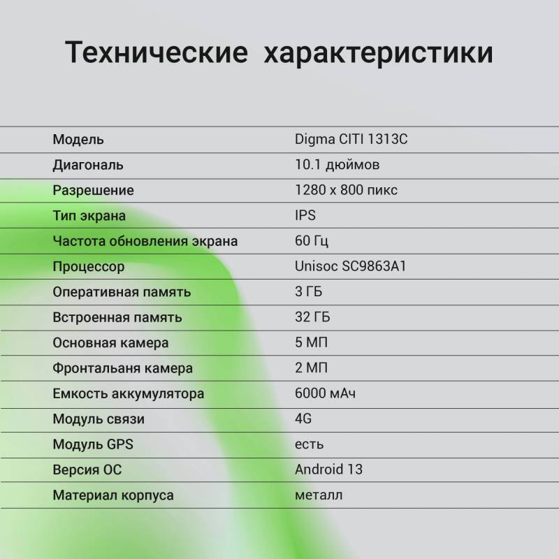 Планшет Digma CITI 1313C 4G SC9863A1 (1.6) 8C RAM3Gb ROM32Gb 10.1" IPS 1280x800 4G 2Sim Android 13 темно-серый 5Mpix 2Mpix BT Wi