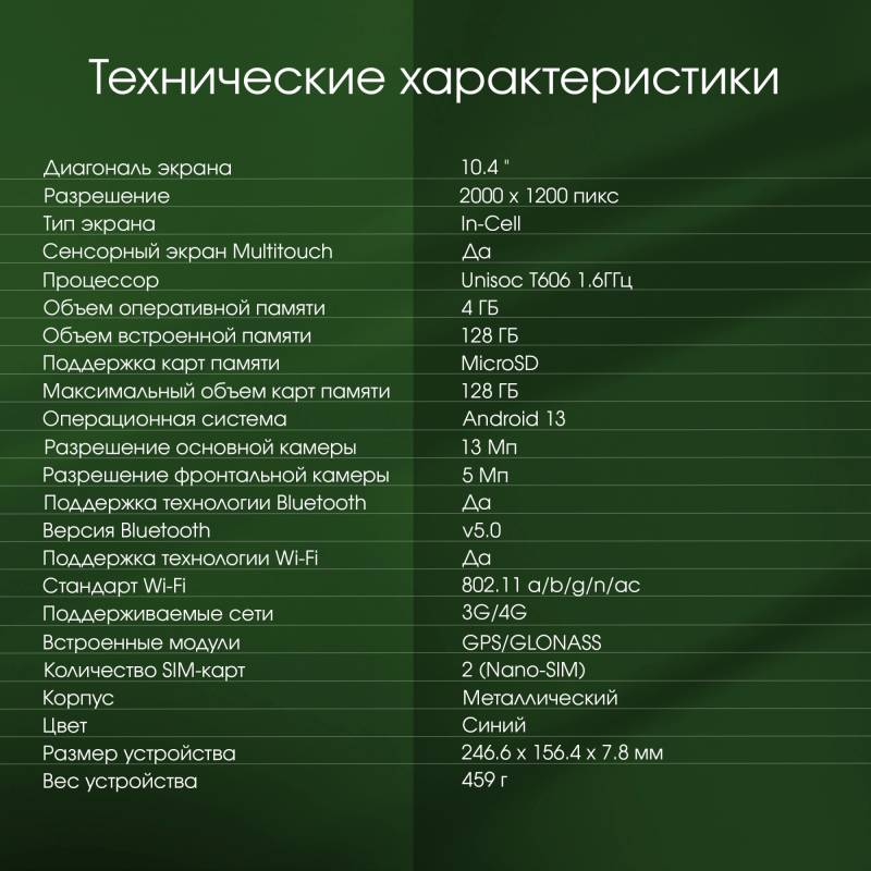 Планшет Digma Pro HIT 14 T606 (1.6) 8C RAM4Gb ROM128Gb 10.4" IPS 2000x1200 4G 2Sim Android 13 синий 13Mpix 5Mpix BT WiFi microSD