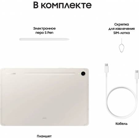 - Планшет, электронное перо S Pen, кабель Type-C (m) - Type-C (m), скрепка для извлечения SIM-лотка