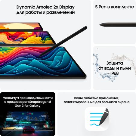 Планшет Samsung Galaxy Tab S9 SM-X710 8 Gen 2 (3.36) 8C RAM8Gb ROM128Gb 11" AMOLED 2X 2560x1600 Android 13 графит 13Mpix 12Mpix
