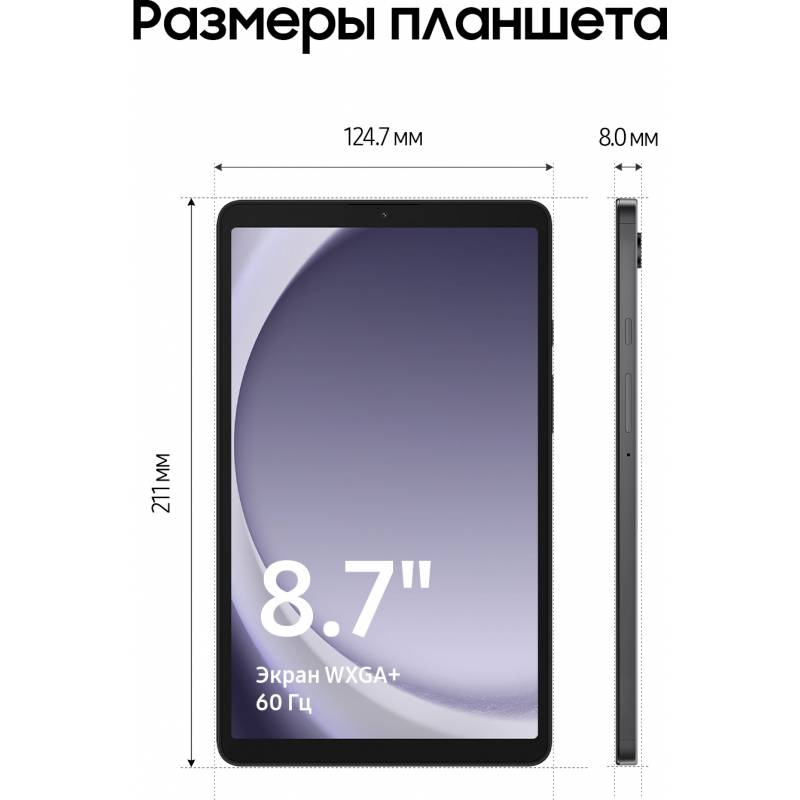 Планшет Samsung Galaxy Tab A9 SM-X115 G99 (2.2) 8C RAM4Gb ROM64Gb 8.7" LCD 1340x800 4G 1Sim Android 13 серый 8Mpix 2Mpix BT WiFi
