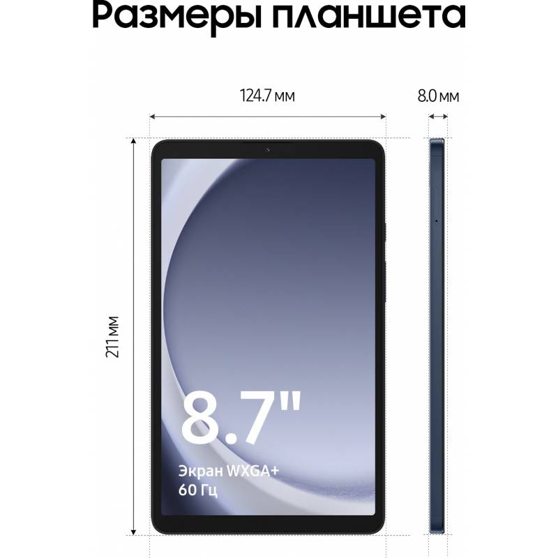 Планшет Samsung Galaxy Tab A9 SM-X115 G99 (2.2) 8C RAM4Gb ROM64Gb 8.7" LCD 1340x800 4G 1Sim Android 13 темно-синий 8Mpix 2Mpix B
