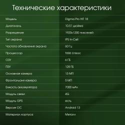Планшет Digma Pro HIT 18 T606 (1.6) 8C RAM6Gb ROM128Gb 10.5" IPS 1920x1200 4G 2Sim Android 13 фиолетовый 13Mpix 5Mpix BT WiFi mi
