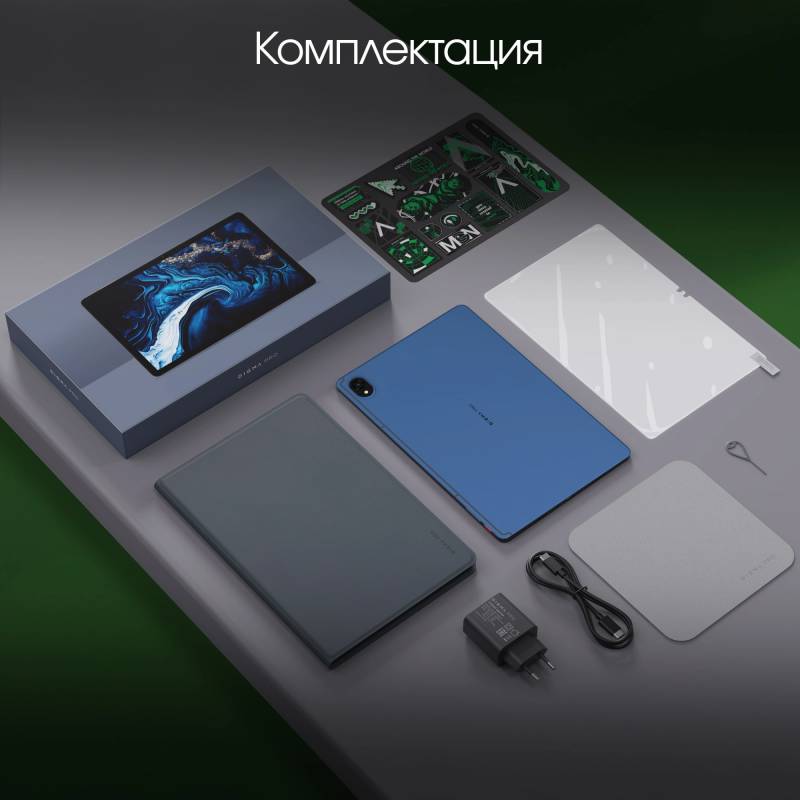 - Сетевой адаптер питания; USB-C кабель; защитное стекло; набор наклеек; салфетка для экрана; скрепка для извлечения SIM-карты; защитный чехол