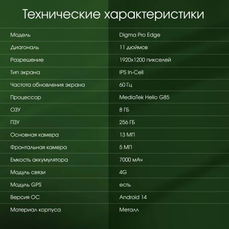 Планшет Digma Pro Edge G85 (2.0) 8C RAM8Gb ROM256Gb 11" In-Cell 1920x1200 4G 2Sim Android 14 синий 13Mpix 5Mpix BT WiFi microSD