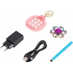 - Сетевой адаптер питания; USB-C кабель; набор наклеек; стилус; спиннер; поп-ит игрушка
