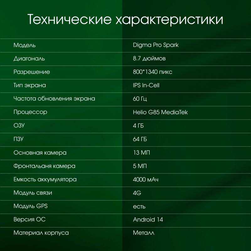 Планшет Digma Pro Spark G85 (2.0) 8C RAM4Gb ROM64Gb 8.7" IPS 1340x800 4G 2Sim Android 14 темно-серый 13Mpix 5Mpix BT WiFi microS