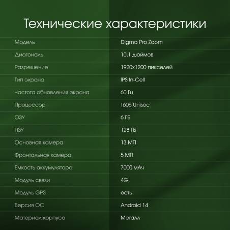 Планшет Digma Pro Zoom T606 (1.6) 8C RAM6Gb ROM128Gb 10.1" IPS 1920x1200 4G 2Sim Android 14 темно-серый 13Mpix 5Mpix BT WiFi mic