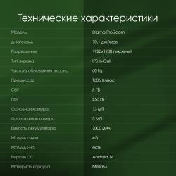 Планшет Digma Pro Zoom T606 (1.6) 8C RAM8Gb ROM256Gb 10.1" IPS 1920x1200 4G 2Sim Android 14 темно-серый 13Mpix 5Mpix BT WiFi mic
