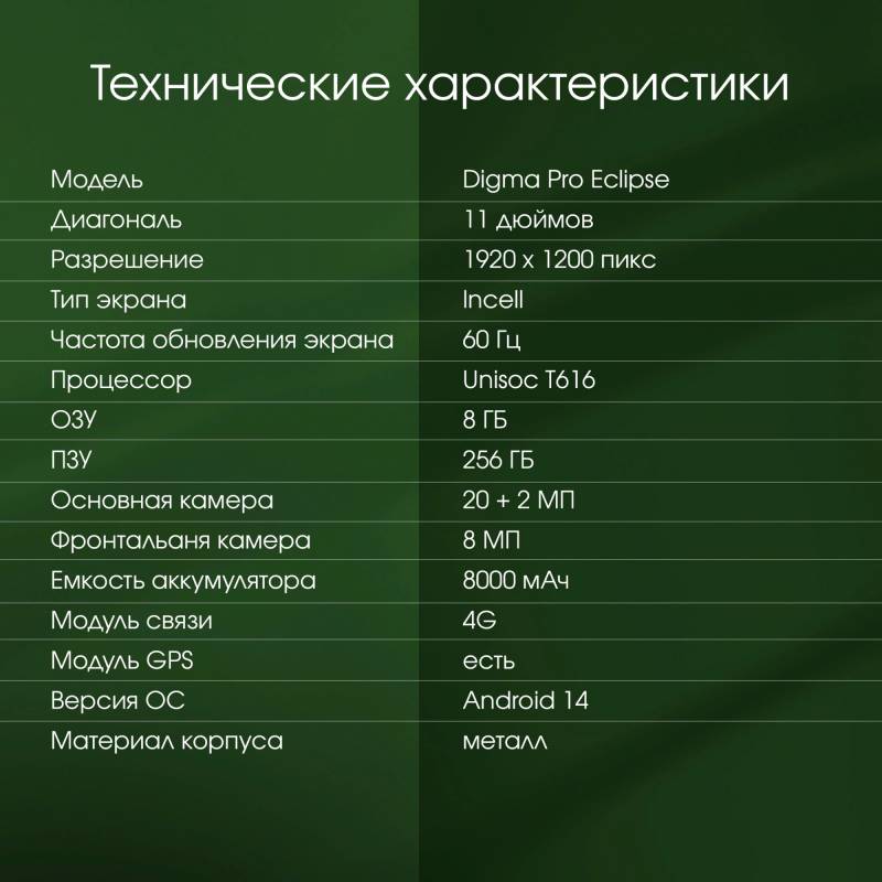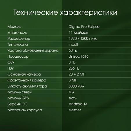 Планшет Digma Pro Eclipse T616 (2.0) 8C RAM8Gb ROM256Gb 11" In-Cell 1920x1200 4G 2Sim Android 14 голубой 20Mpix 8Mpix BT WiFi mi