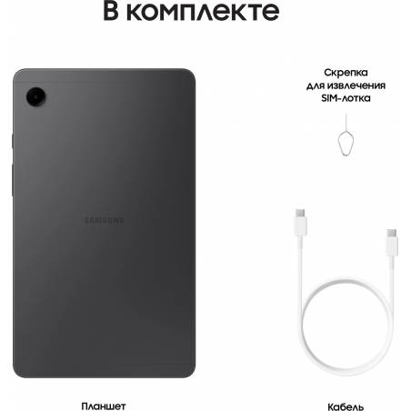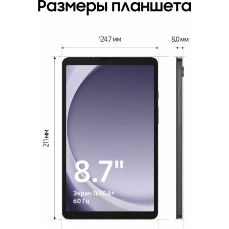 Планшет Samsung Galaxy Tab A9 SM-X115 G99 (2.2) 8C RAM8Gb ROM128Gb 8.7" LCD 1340x800 4G 1Sim Android 13 серый 8Mpix 2Mpix BT WiF
