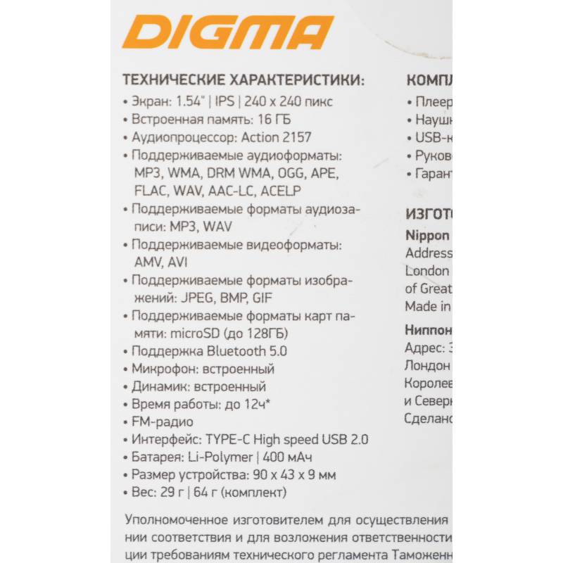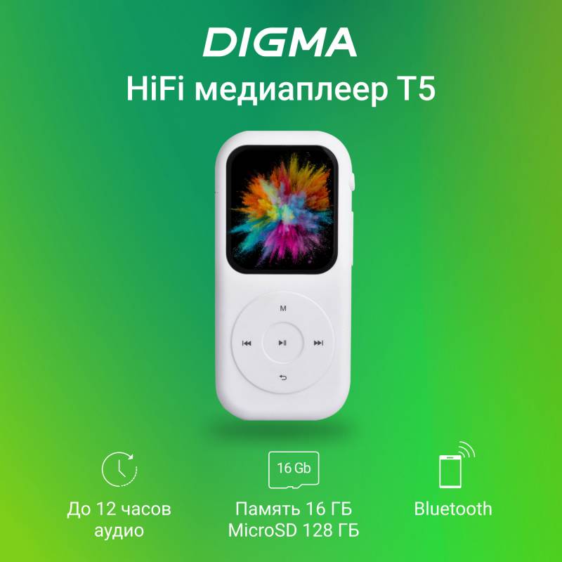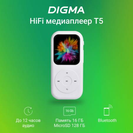 Плеер Hi-Fi Flash Digma T5 16Gb белый/1.54"/FM/microSDHC