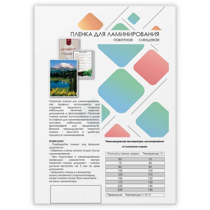 Пленка для ламинирования Heleos 60мкм A4 (100шт) глянцевая 216x303мм LPA4-60