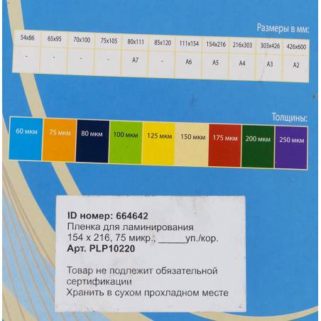 Пленка для ламинирования Office Kit 75мкм A5 (100шт) глянцевая 154x216мм PLP10220