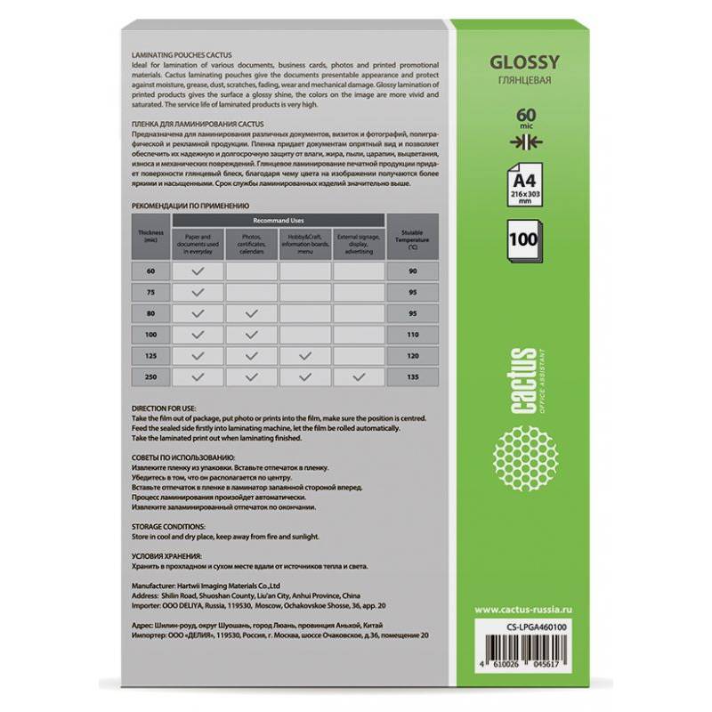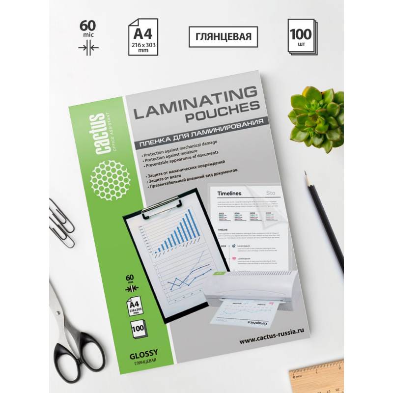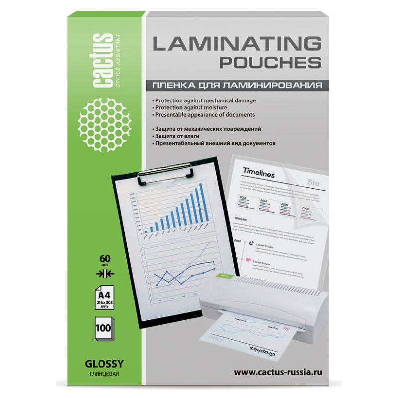 Пленка для ламинирования Cactus 60мкм A4 (100шт) глянцевая 216x303мм CS-LPGA460100