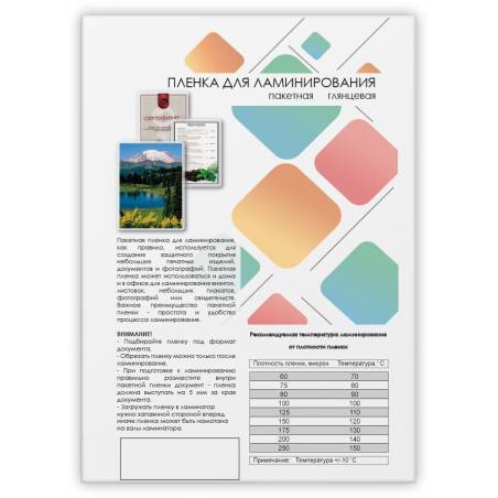 Пленка для ламинирования Heleos 100мкм A4 (100шт) глянцевая 216x303мм LPA4-100
