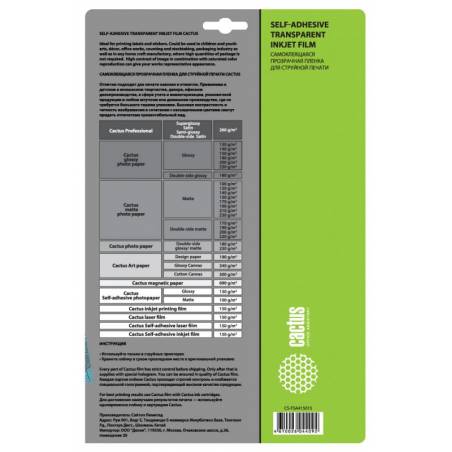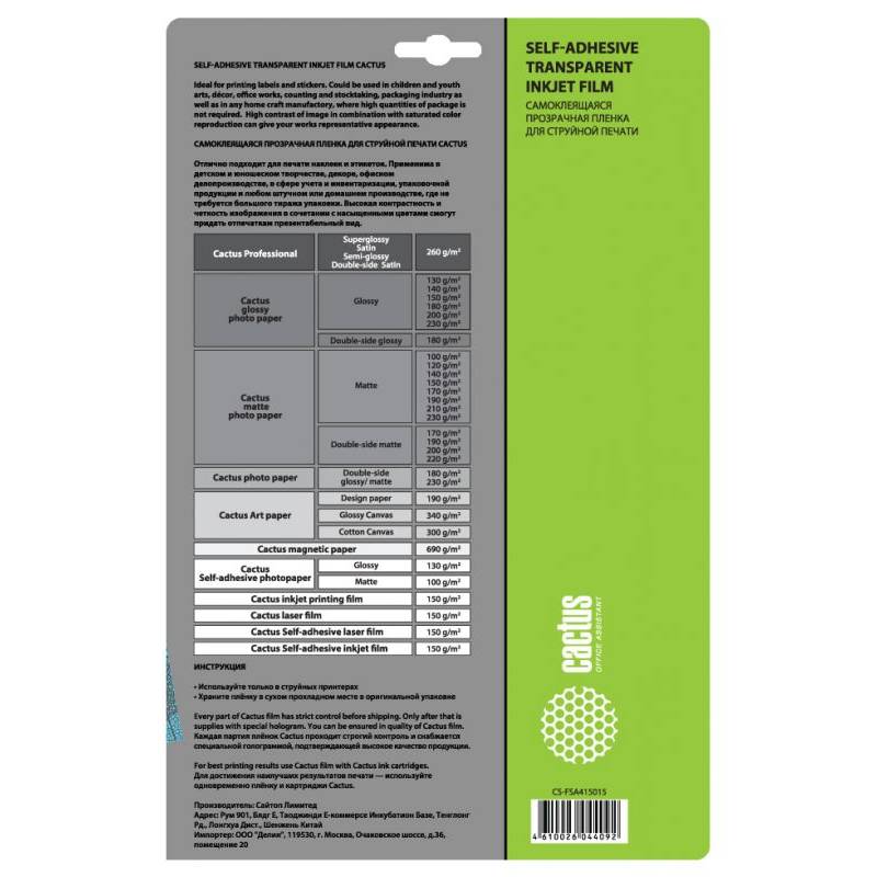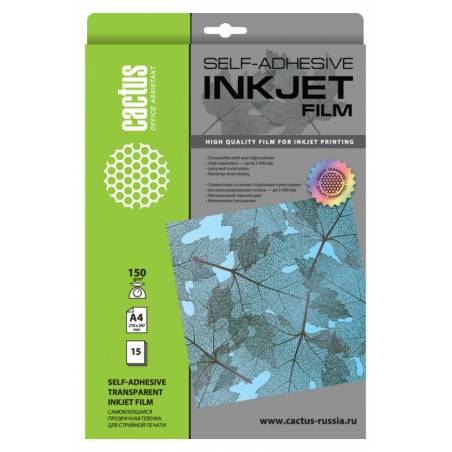 Пленка Cactus CS-FSA415015 A4/150г/м2/15л./прозрачный матовое самоклей. для струйной печати