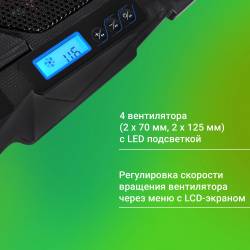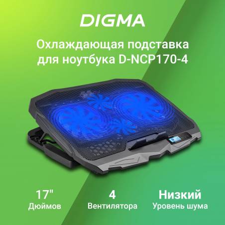 Подставка для ноутбука Digma D-NCP170-4 17"390x280x28мм 2xUSB 4x 70/125ммFAN 750г черный