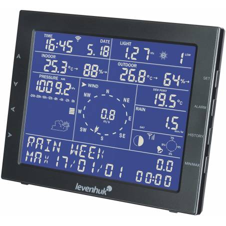 - Метеостанция Levenhuk Wezzer PRO LP330 – профессиональный многофункциональный инструмент для отслеживания и прогнозирования погоды. Станция имеет компактные размеры и простое управление, поэтому ее с успехом можно использовать не только в профессиональной