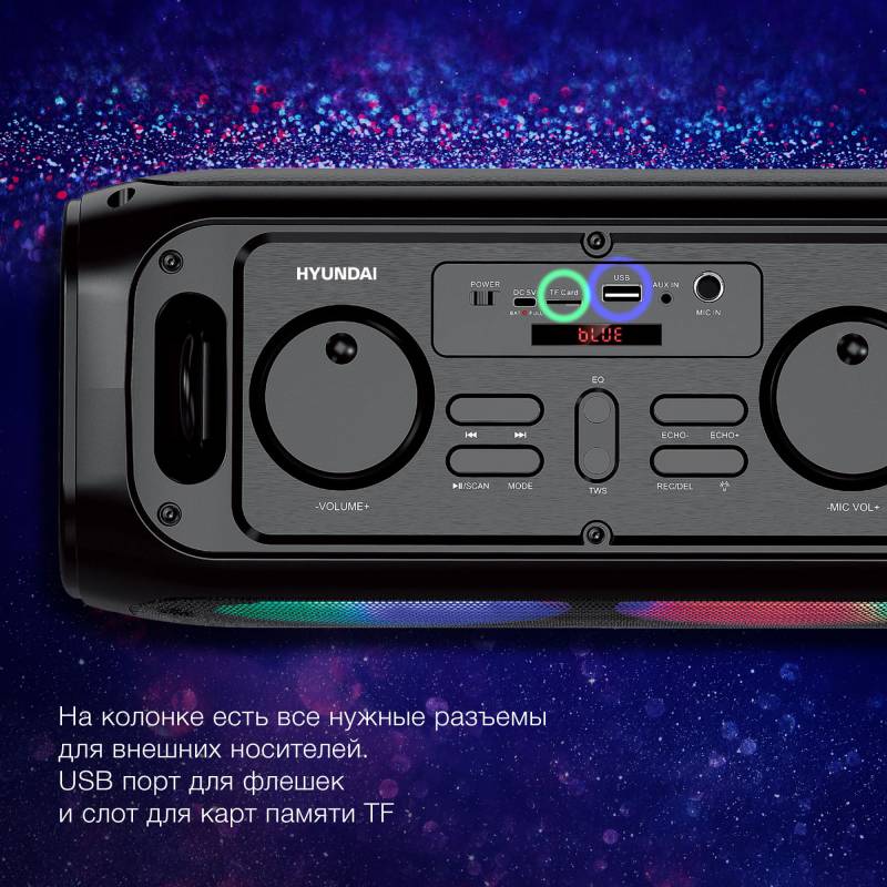 Колонка порт. Hyundai H-PS1030 черный/черный 40W 2.0 BT 10м 3600mAh