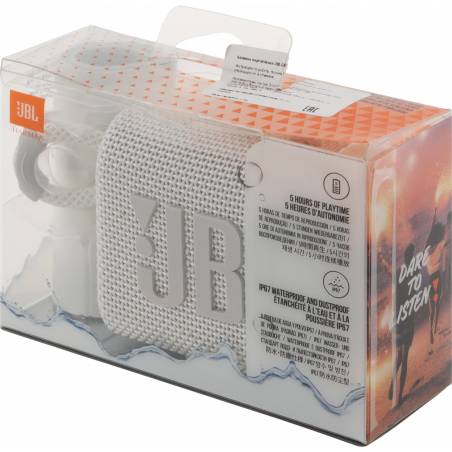 - В ультракомпактном стильном корпусе JBL Go 3 удачно сочетаются разноцветная ткань и выразительные детали — колонка выглядит так же великолепно, как и звучит.