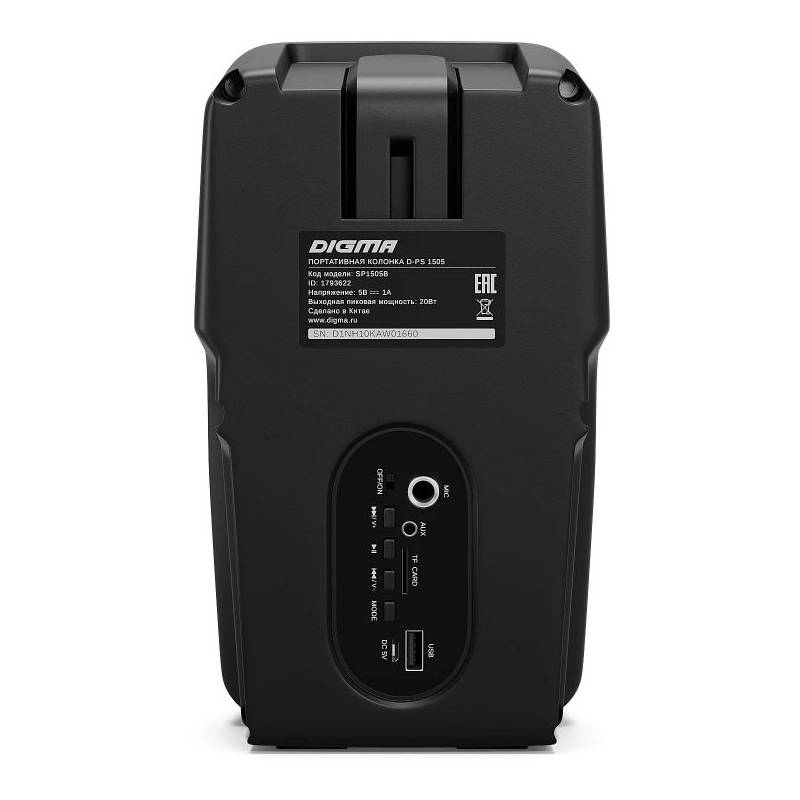 Колонка порт. Digma D-PS1505 черный 20W 2.0 BT 10м 1200mAh (SP1505B)