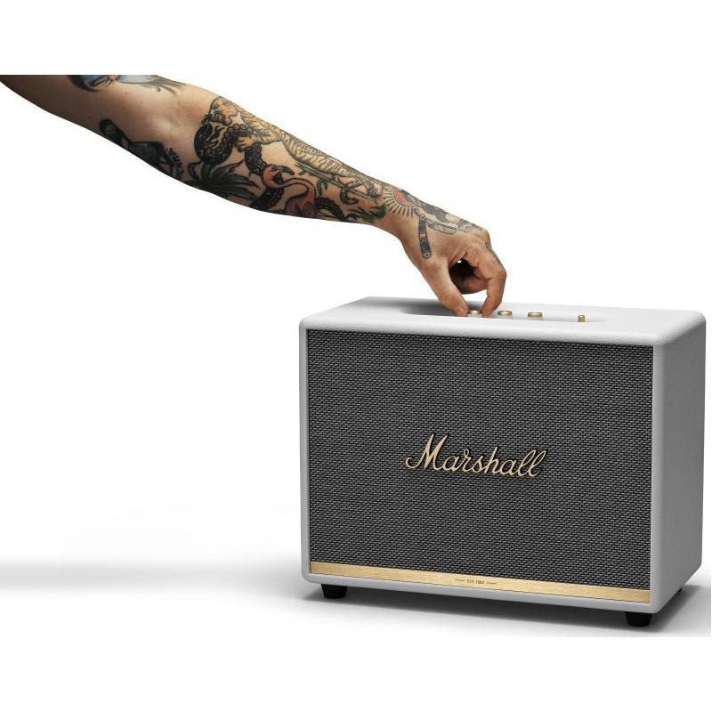 - Woburn II — самая большая колонка Marshall — очень четко передает высокие частоты и легко держит мощные басы, а средний диапазон звучит прозрачно и живо. Технологии Bluetooth 5.0 и aptX обеспечивают превосходное качественное звучание при беспроводном подк