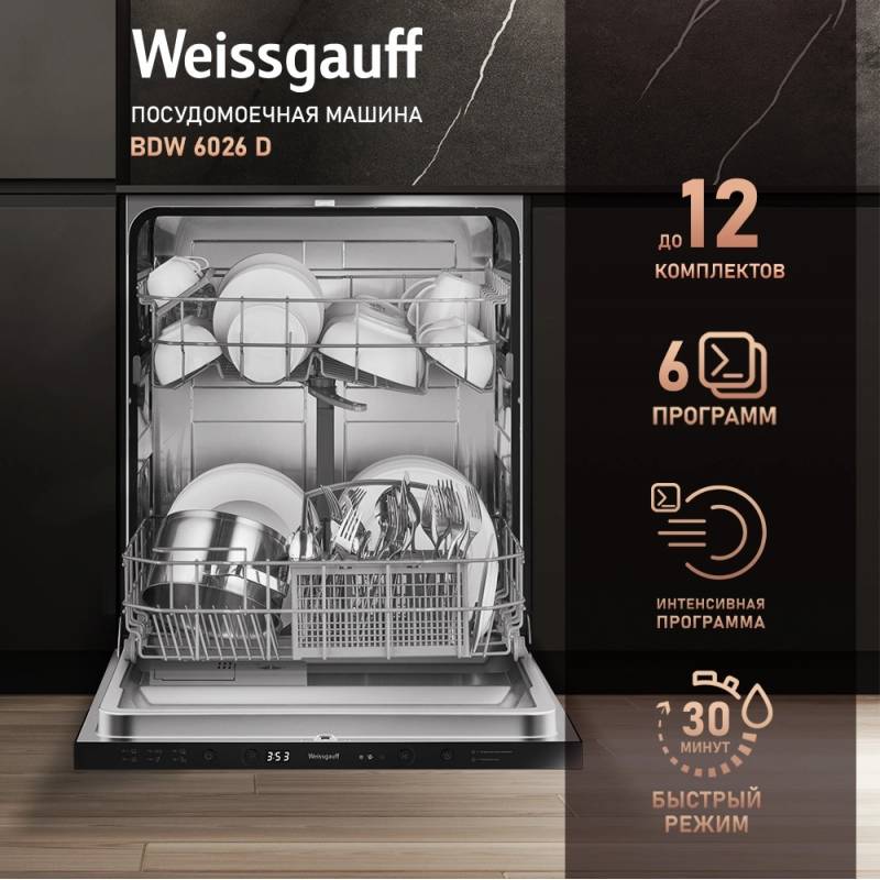 Посудомоечная машина встраив. Weissgauff BDW 6026 D полноразмерная